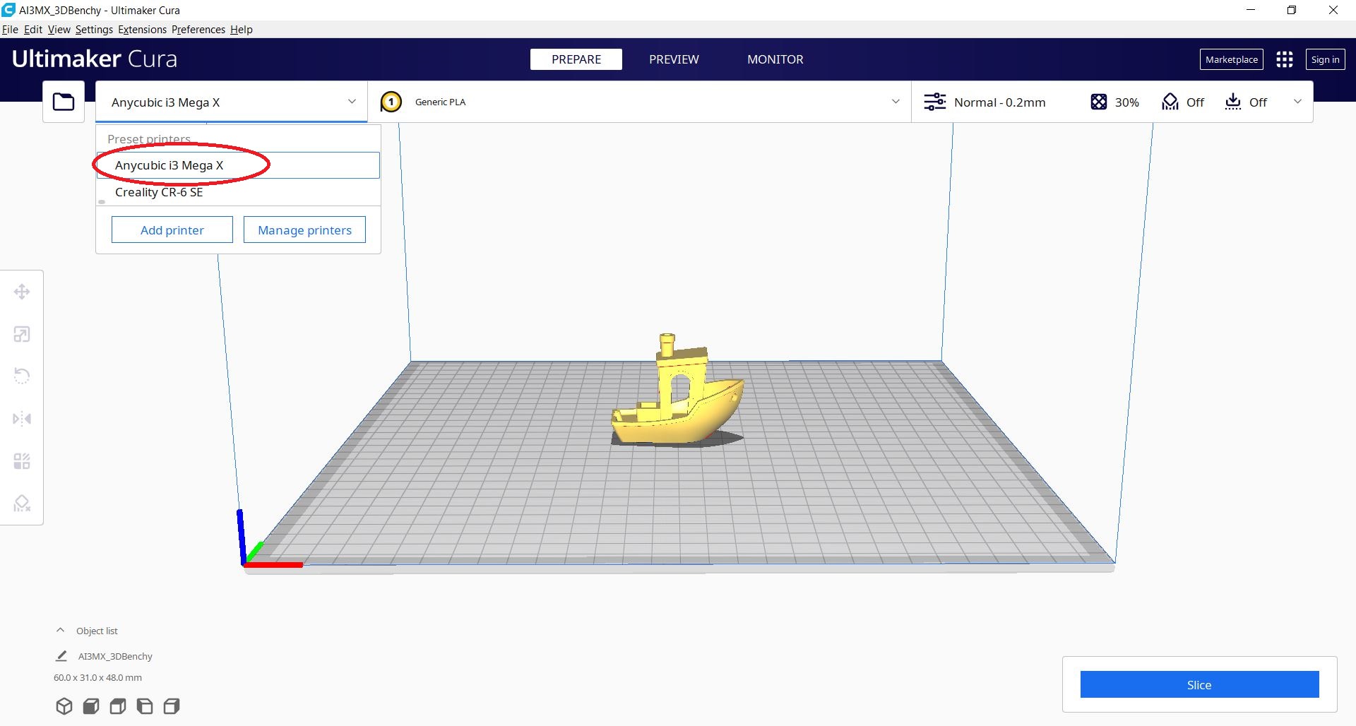 Choose the 3D Printer you want. In your case, choose the Anycubic i3 Mega X.