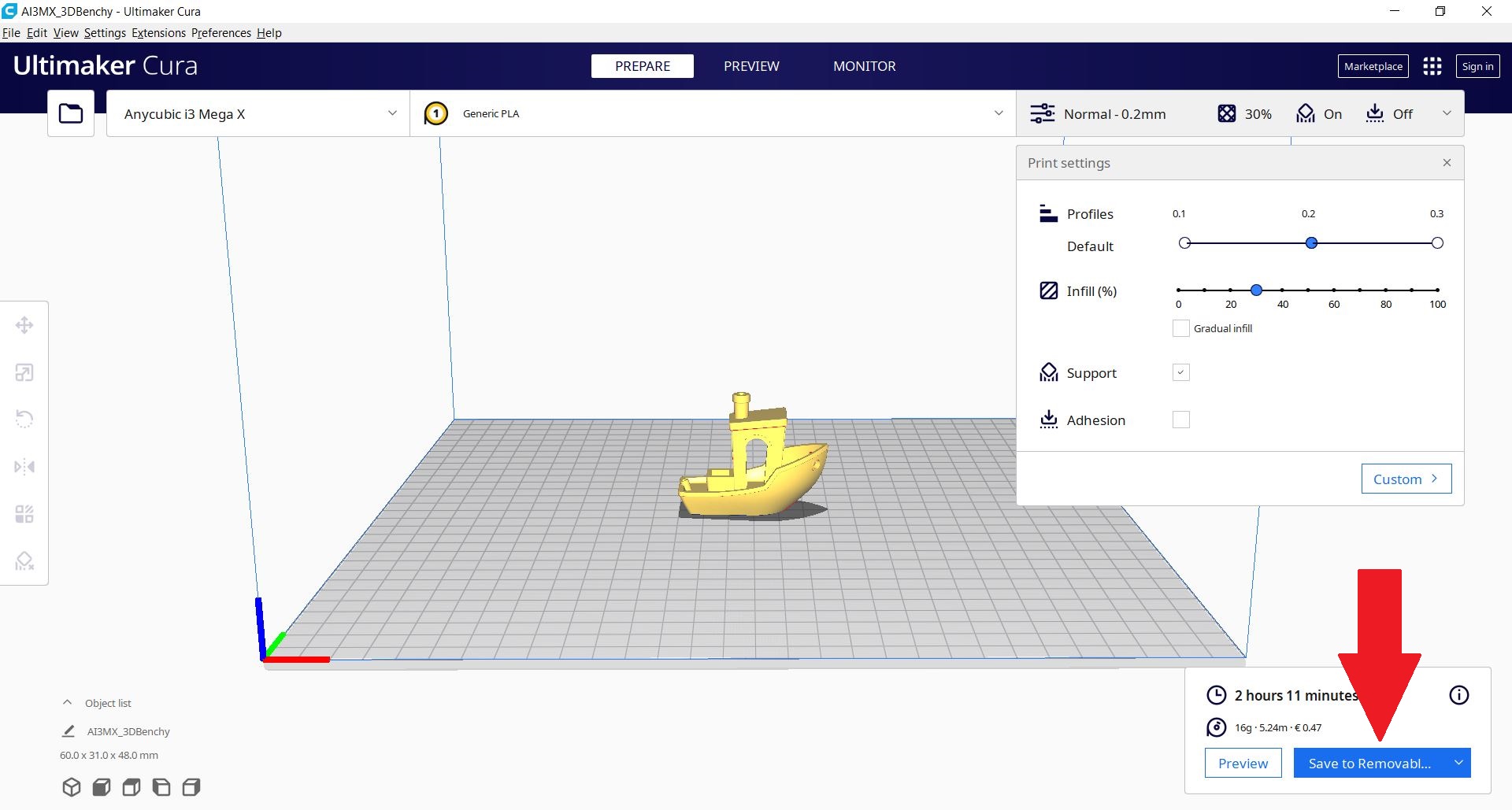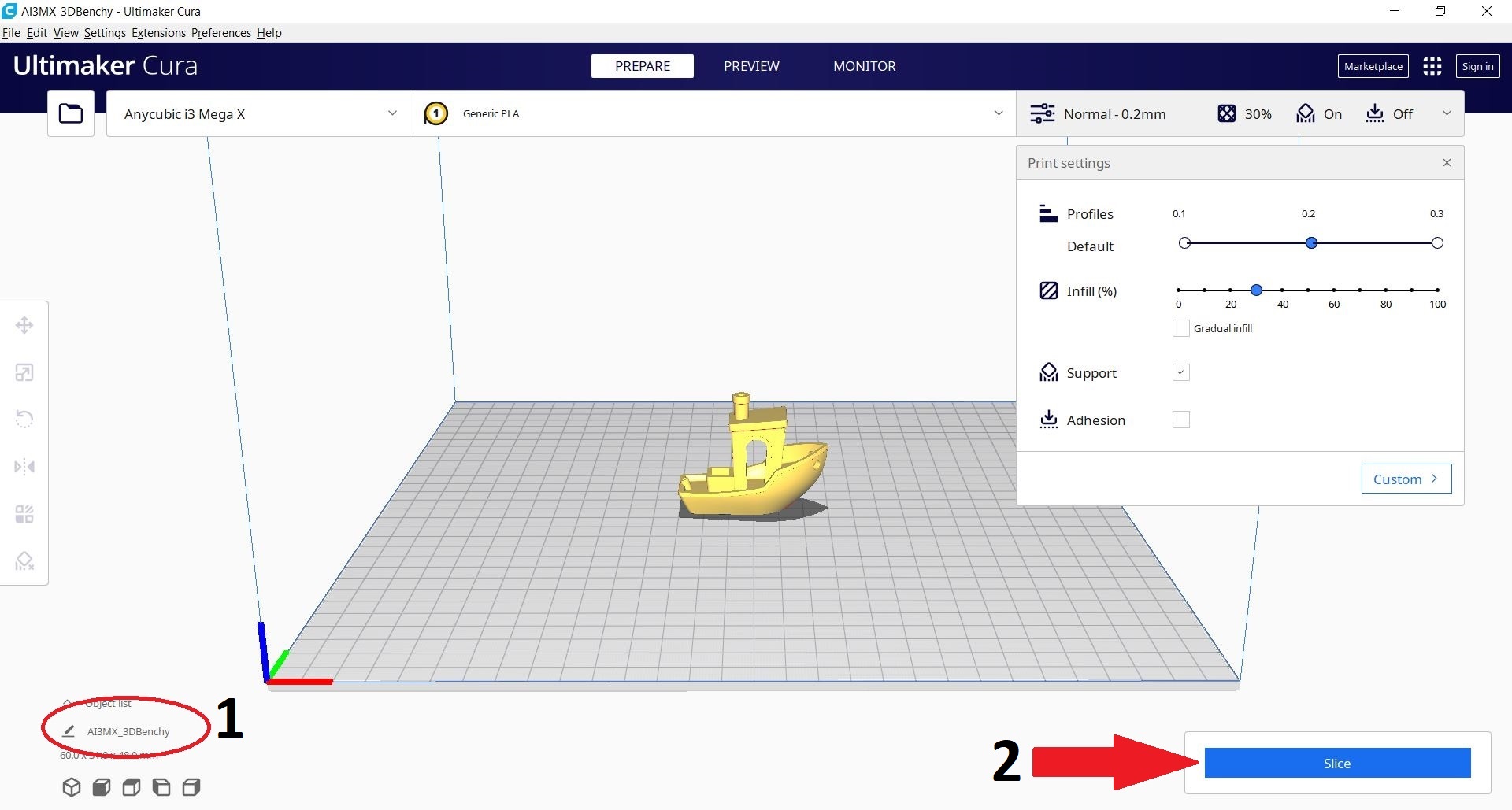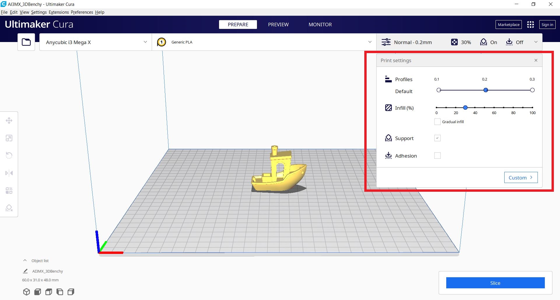 Make the necessary settings, if needed (Infill, Support, etc.).