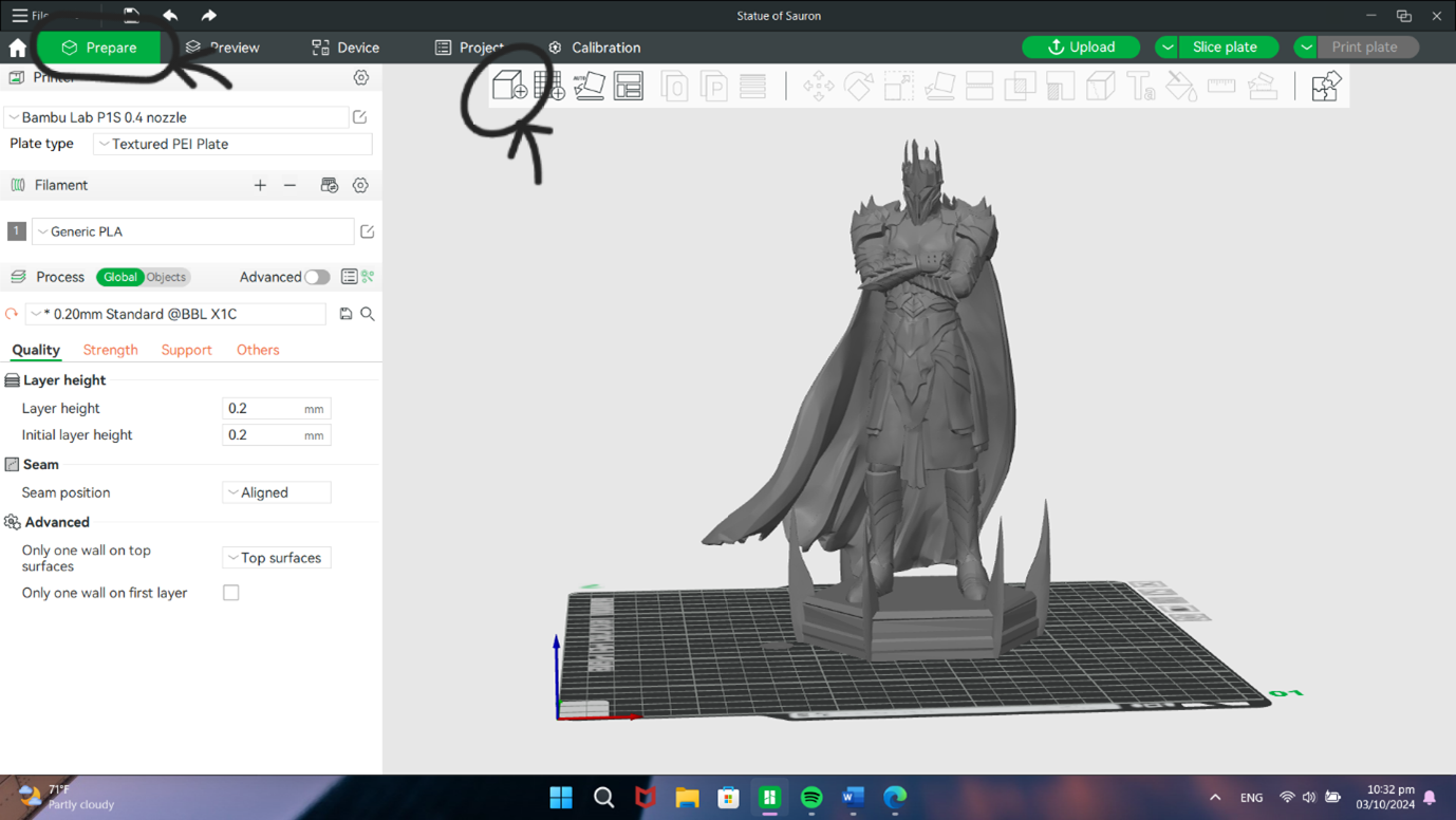 For other websites, like Thingiverse, you need to find the model you want and download it. Then, from within Bambu Studio, go to the print area and import your file