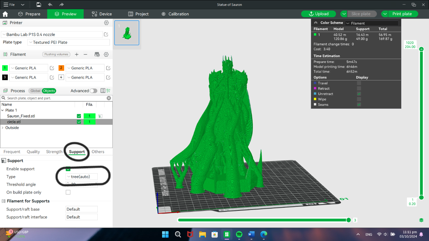 If the print need support go in the support settings and choose the tree type for easier removal,and the print will look something like this