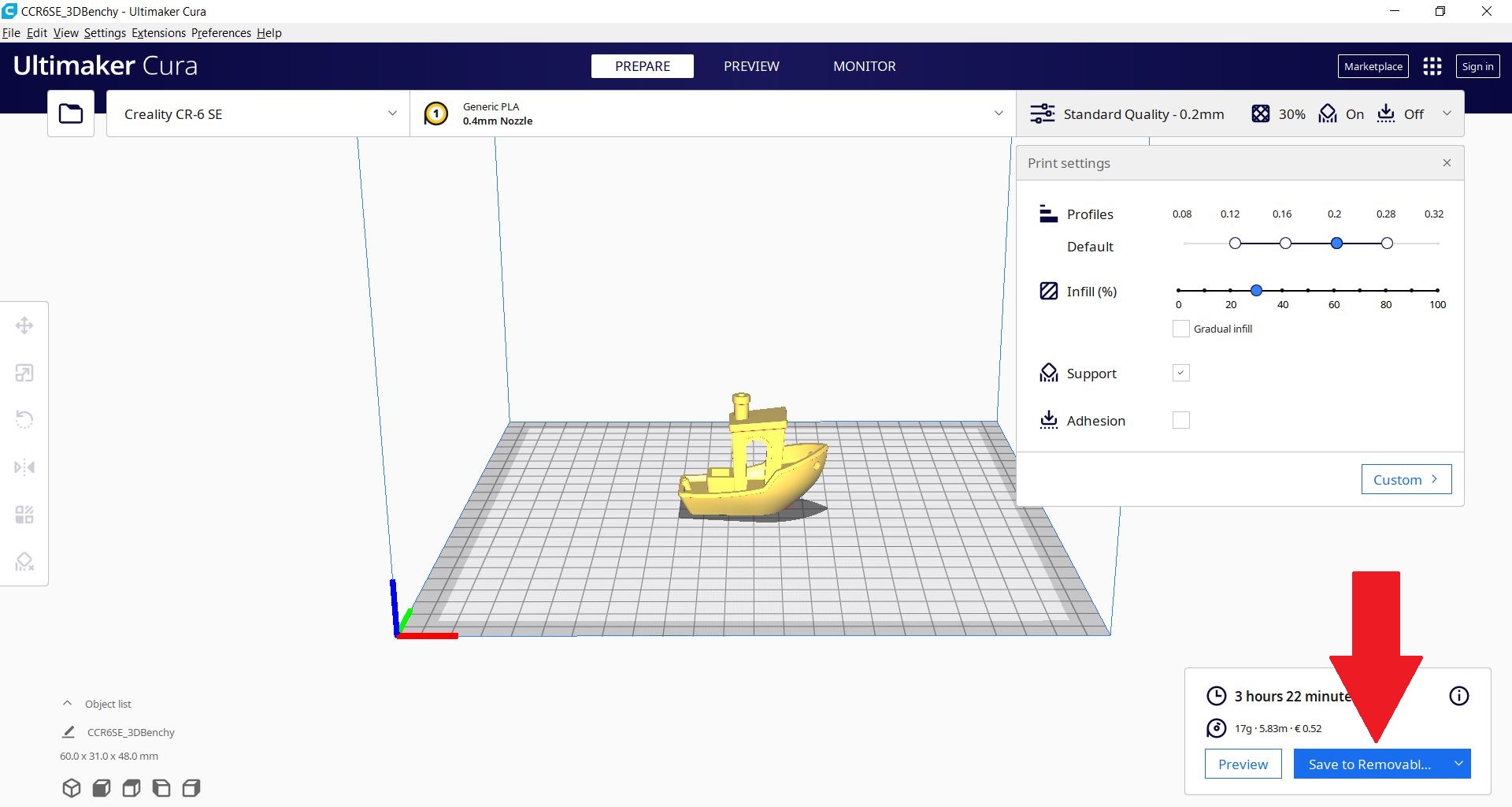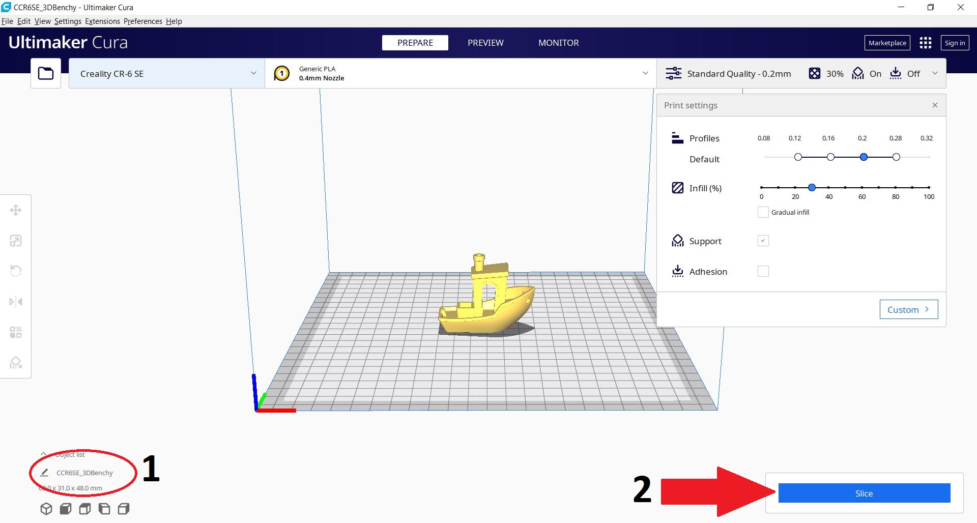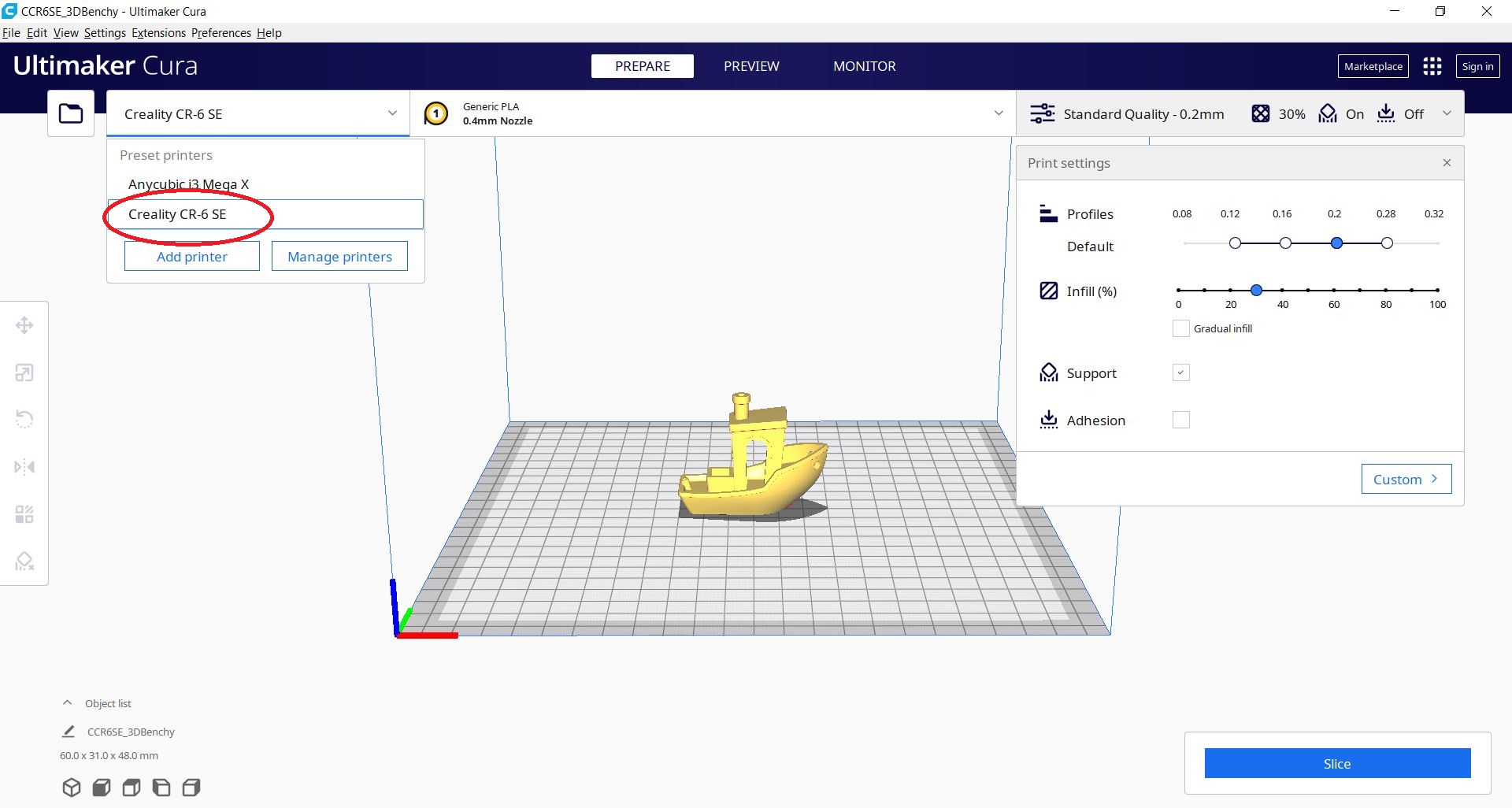 Choose the 3D Printer you want. In your case, choose the Creality CR-6 SE.
