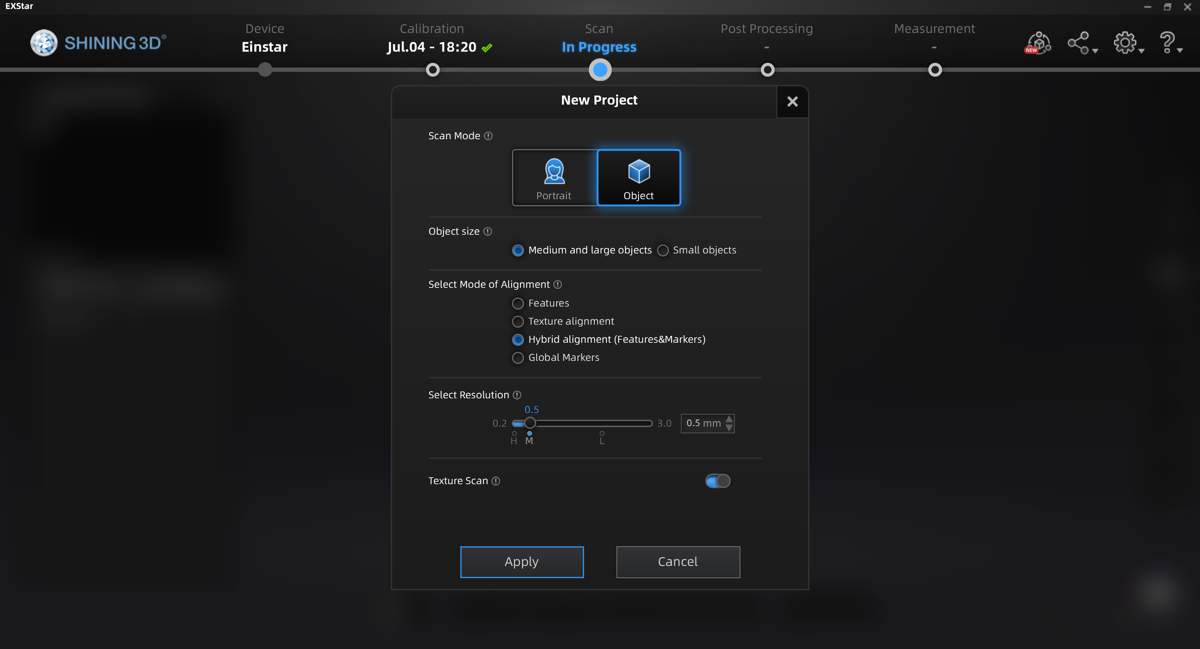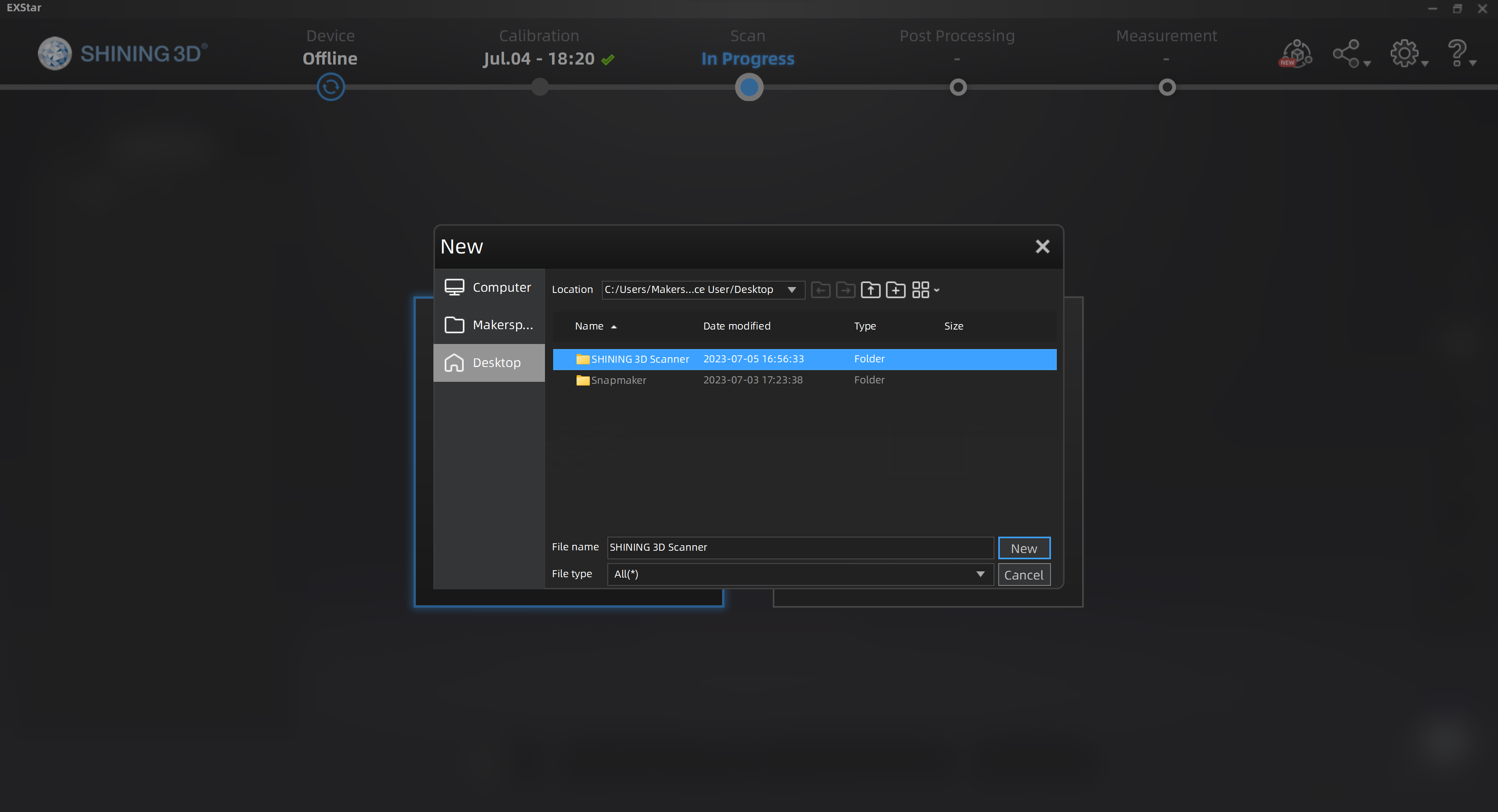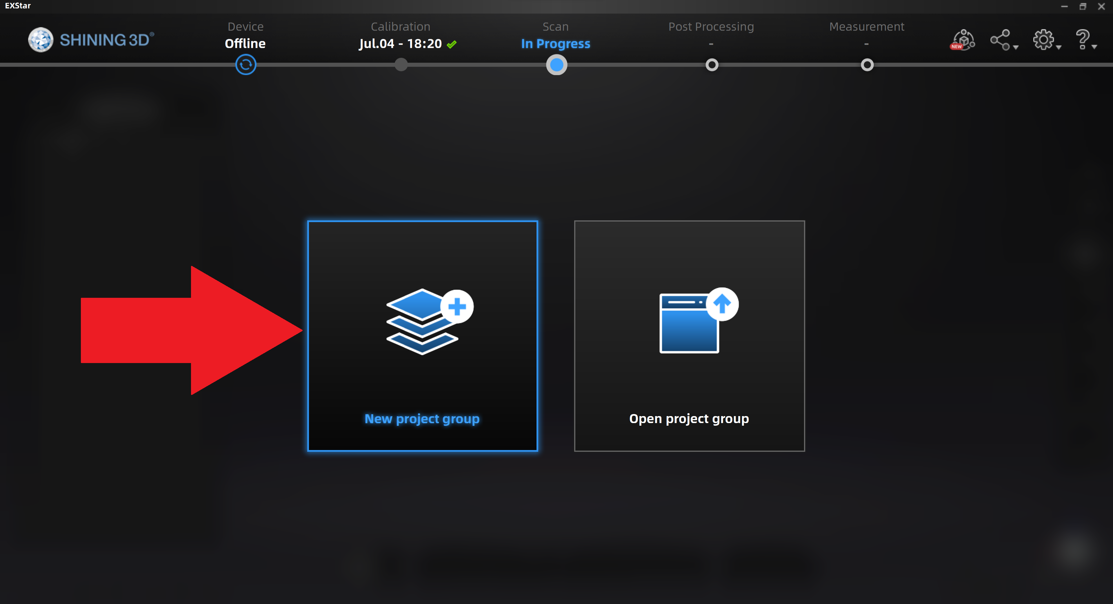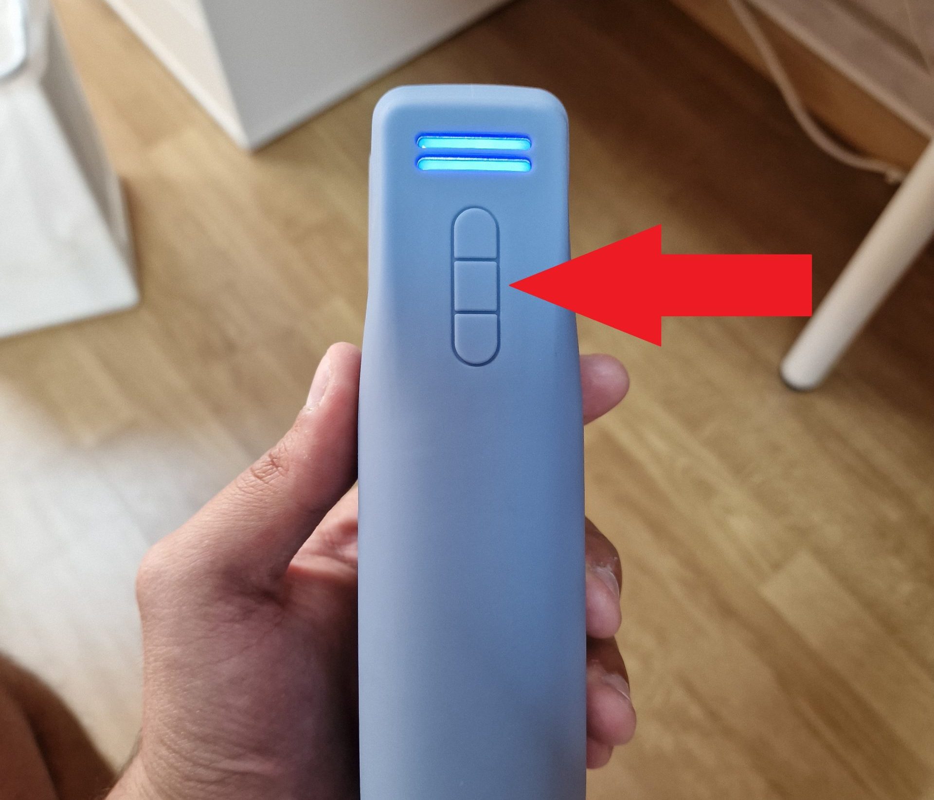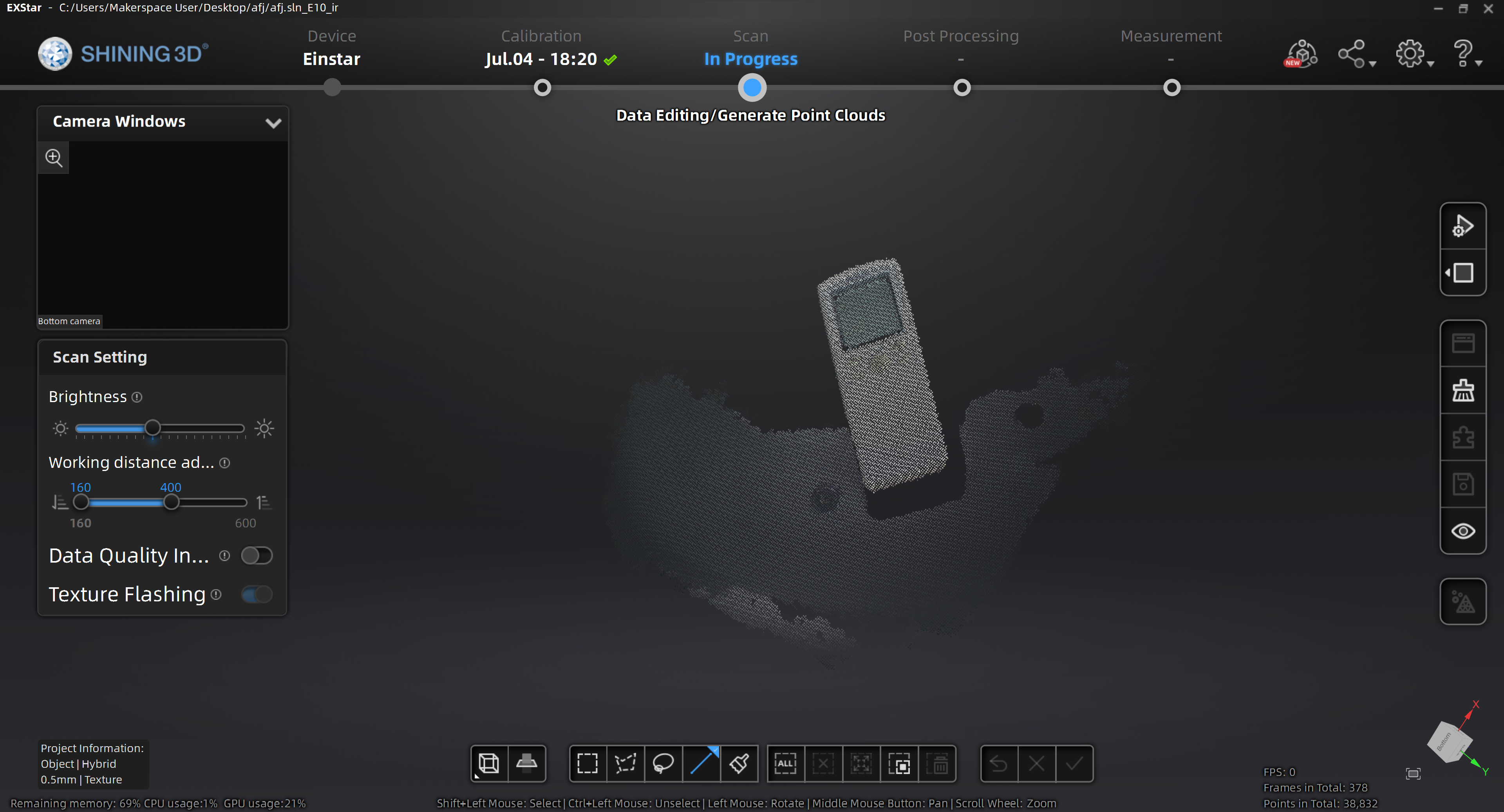 By pressing the middle button on the 3D Scanner the scanning will start.