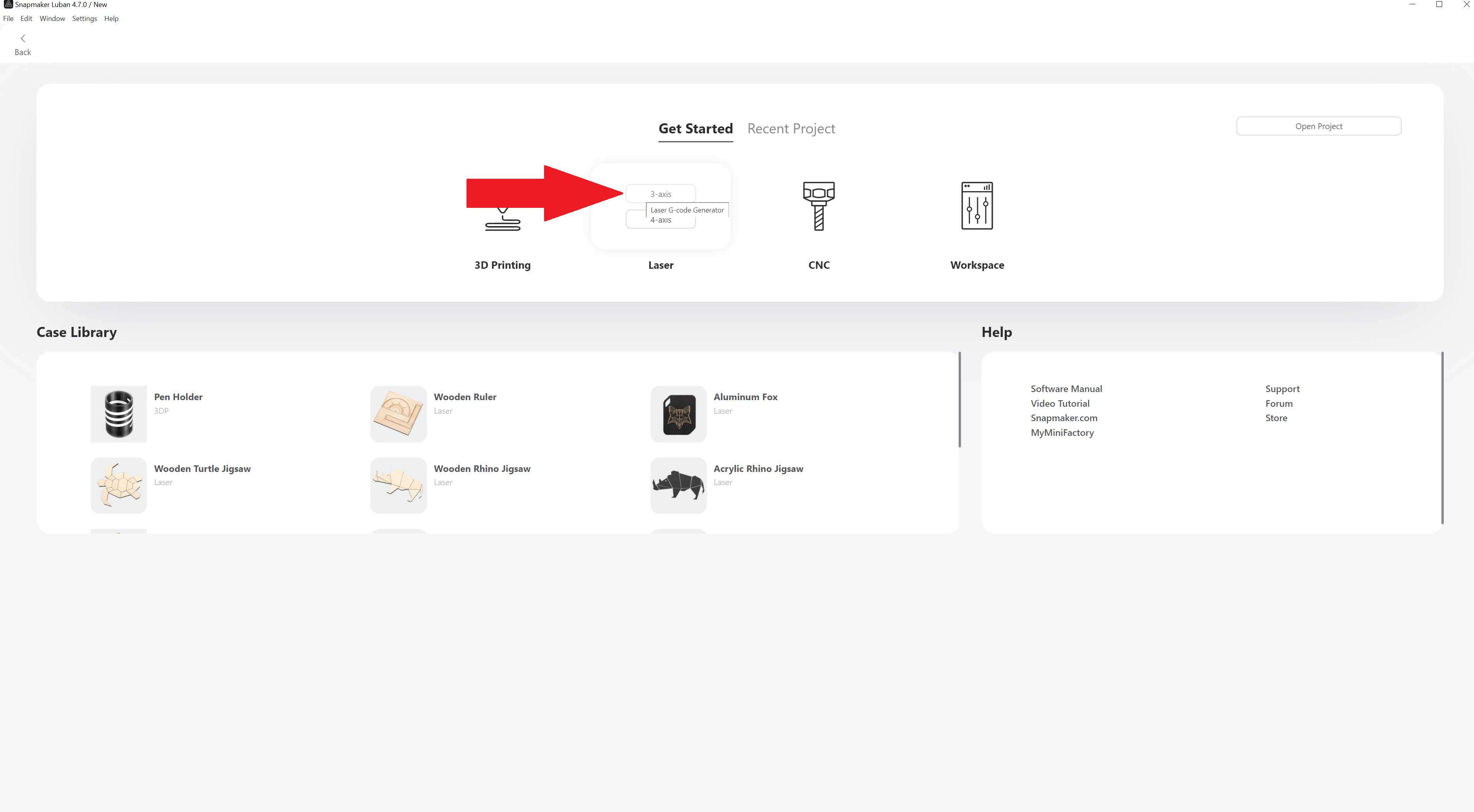 Go to the Snapmaker Luban software and on Laser option, select 3 axis.