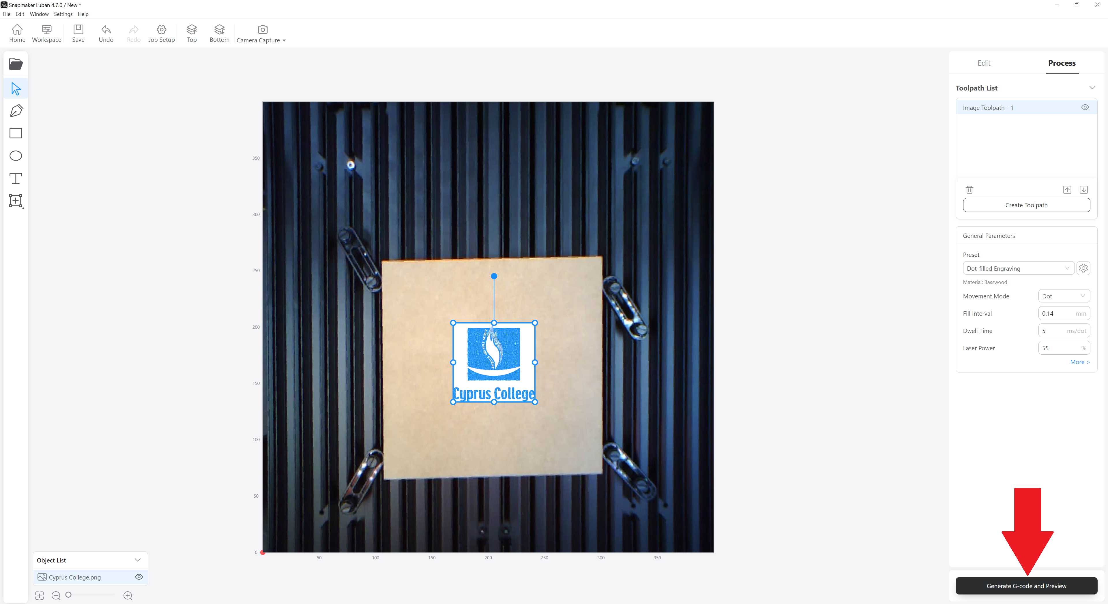 Click on Generate G-code and Preview.