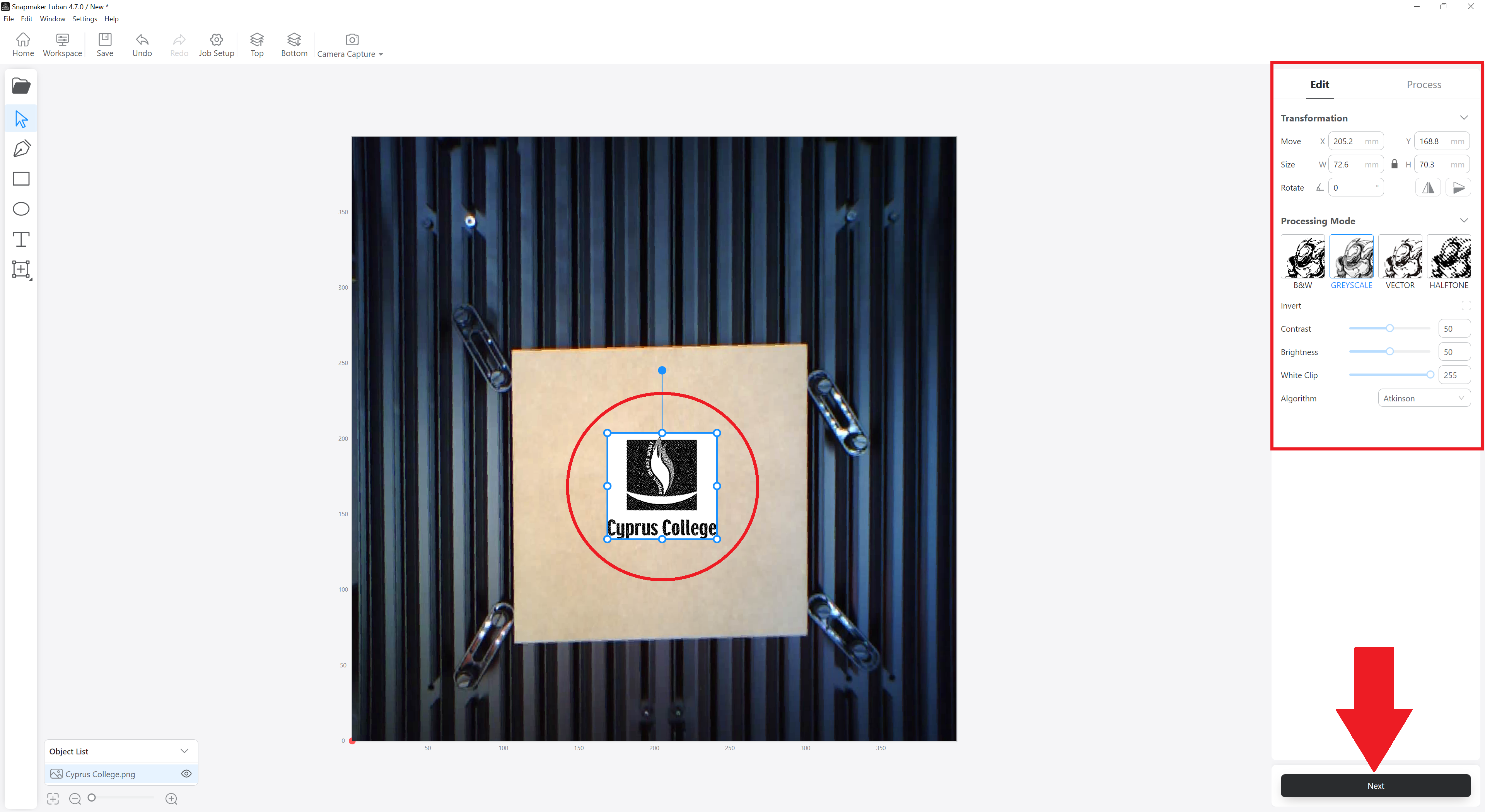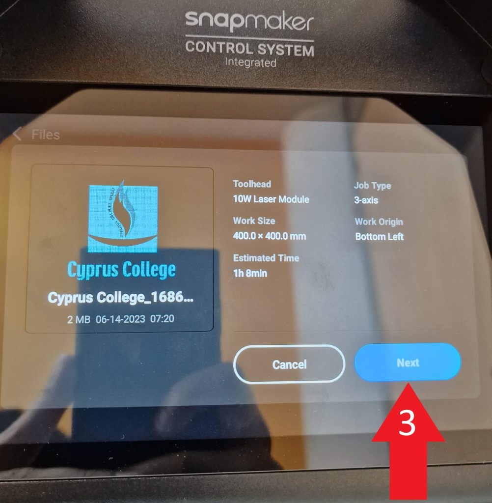 - Press the Next button and the engraving – cutting will start.
